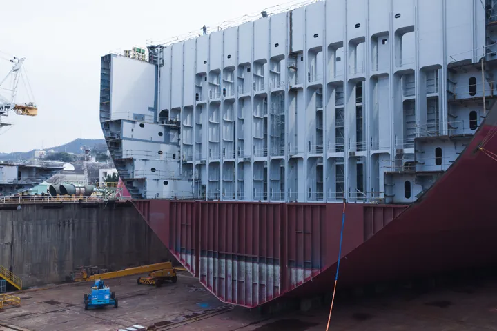 Ship's strong, watertight shell, made of plates and beams for buoyancy and strength.